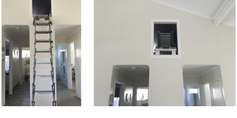 Whilst not a traditional mezzanine, the below photos show the versatility of the Columbus Junior Vertical. This shows a perfect example of the ladder in use, in an unusual or restricted space. Roof Space Renovators recently installed this Columbus Junior Vertical access ladder into a unit located at the Sunshine Coast. The homeowners required a compact vertical style ladder to access an attic storage area within the roof space. The Columbus Junior Vertical fit perfectly in the required space, both when pulled down and when stored in its closed position. This ladder provides the homeowners with safe and simple access to their stored items.